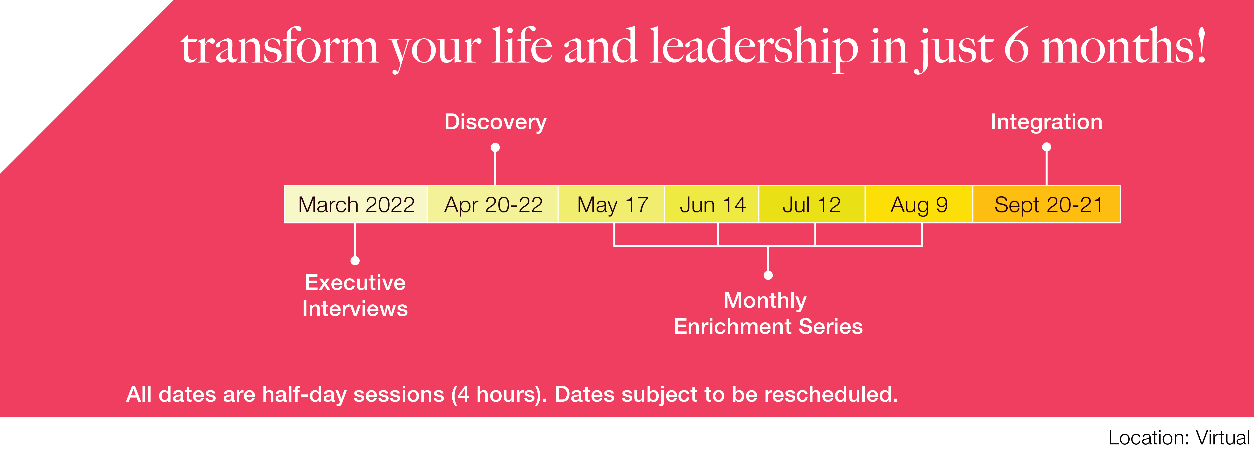 Our approach is to create an experience-based learning environment for participants to have a meaningful look at themselves in their world. We encourage them to look with “new eyes” at their relationship to their roles as leaders, ultimately aspiring to enrich their leadership impact for themselves and others. Through their interaction with others in the program, they will have the opportunity to share knowledge, explore other’s perspectives, learn best practices and incorporate new behaviors for leadership success, ultimately shaping their own unique leadership style.